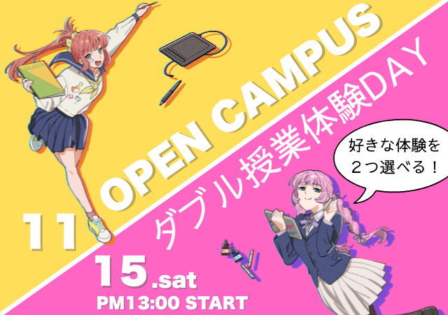 【11/15(土)オープンキャンパス】好きな体験を2つ選べる!ダブル授業体験DAY!!