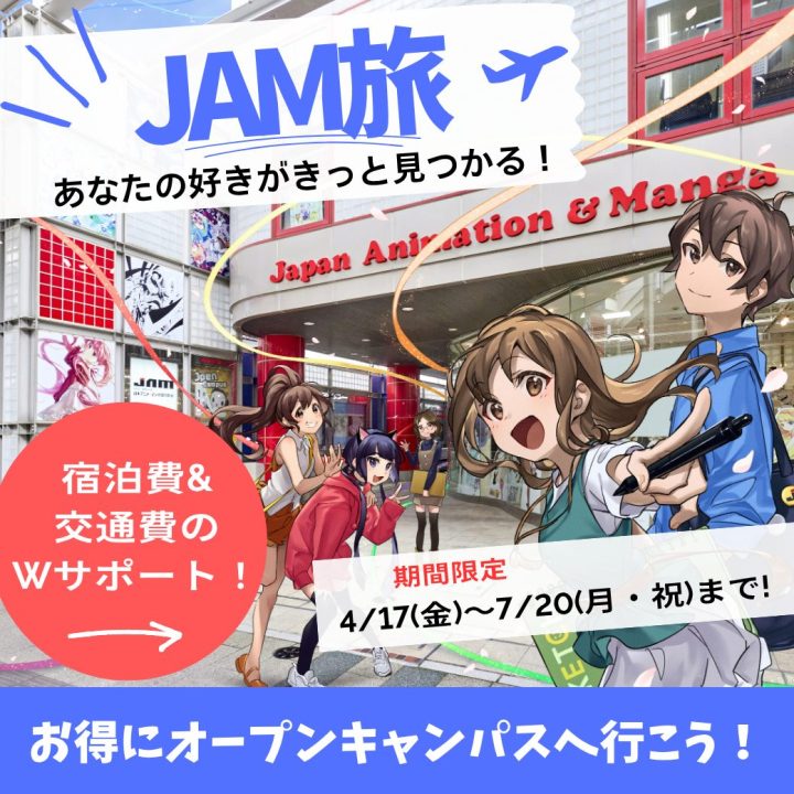 みなさんこんにちは!JAMでは遠方の方がオープンキャンパスへお得に参加できる「JAM旅」プランをご用意しました!&n ・・・