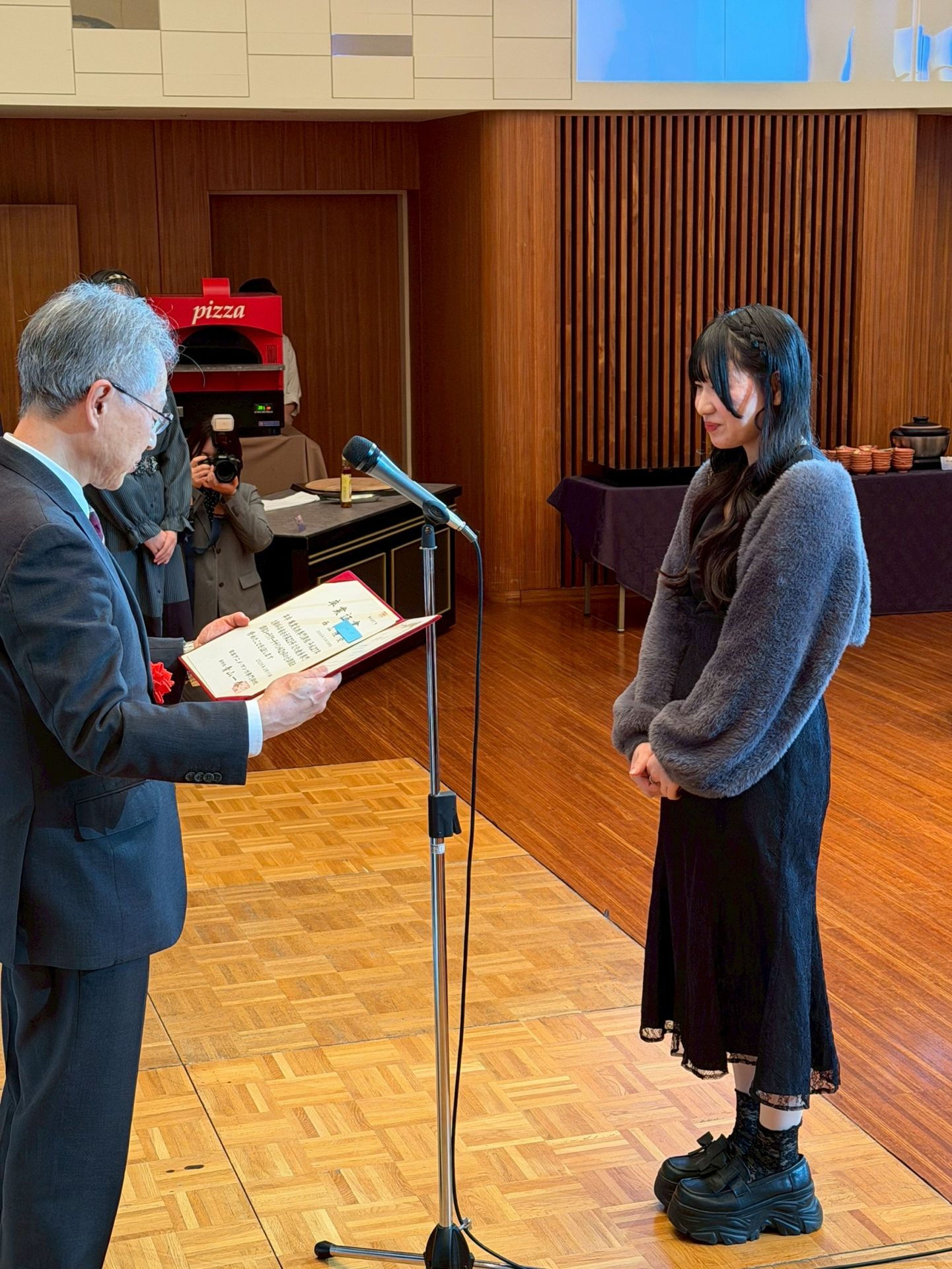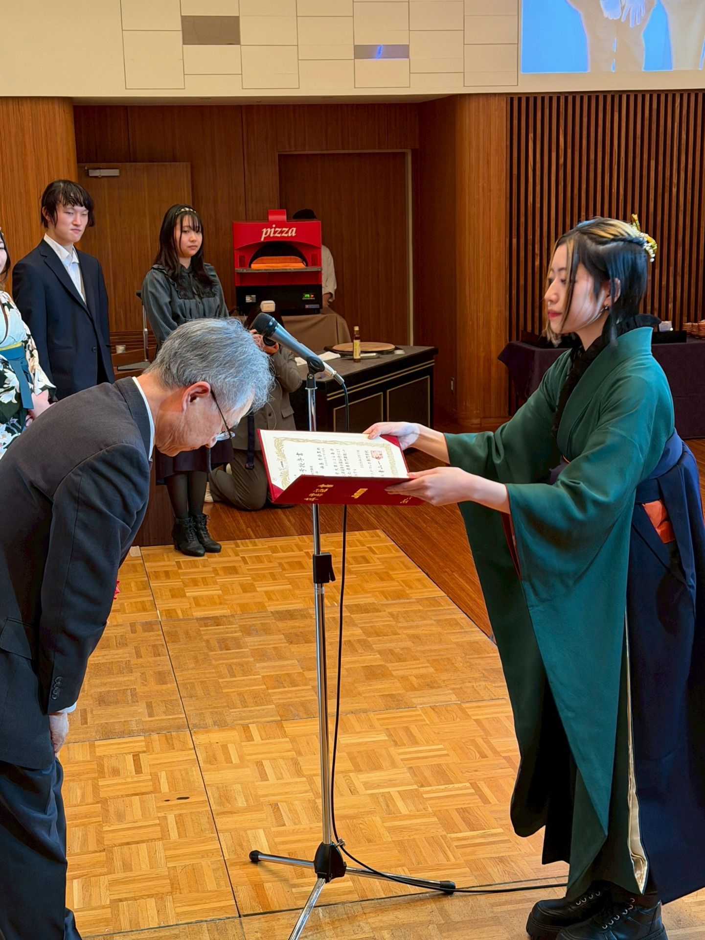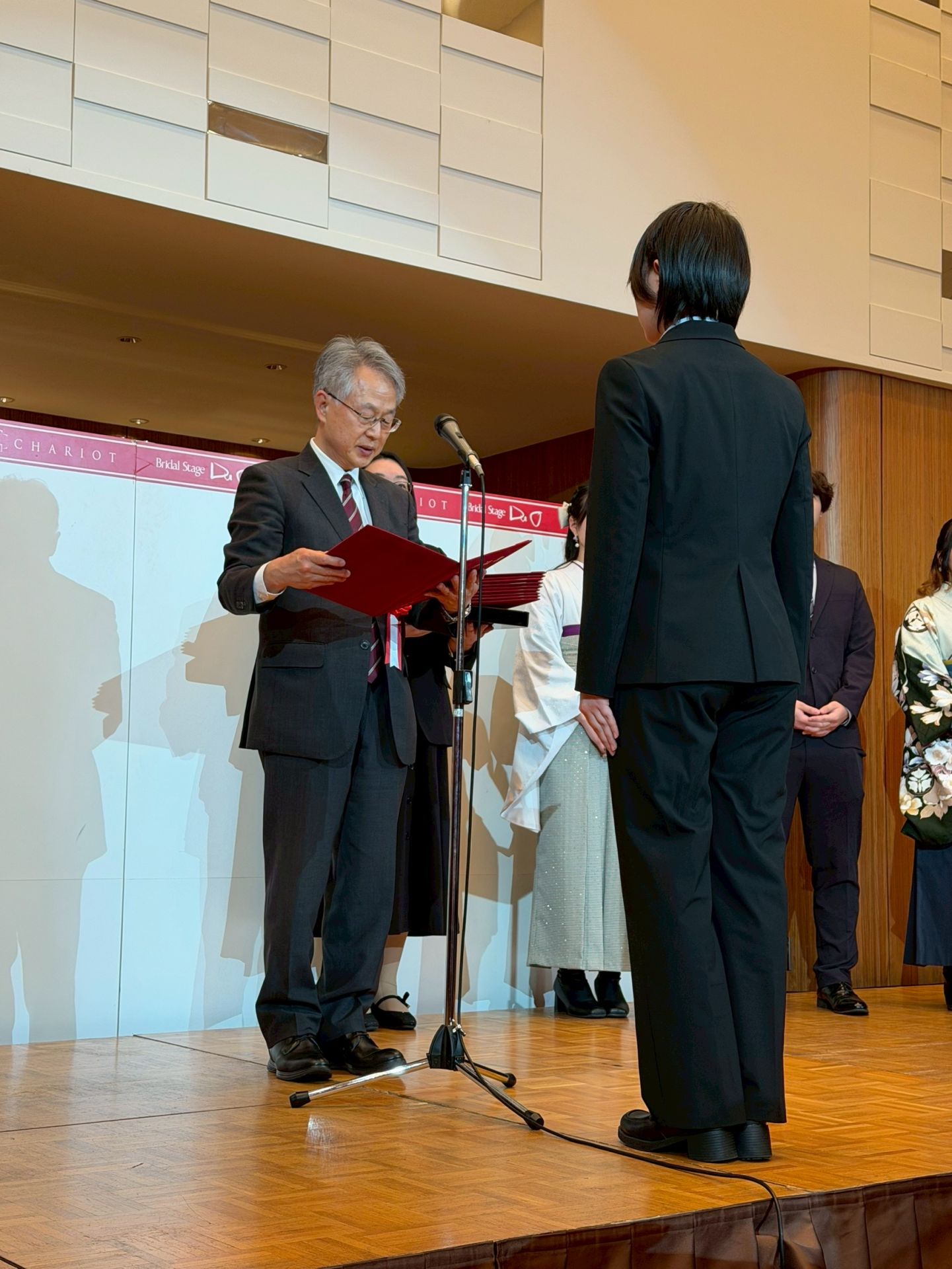 卒業記念パーティーが始まると各科の代表者が卒業証書を授与!✨